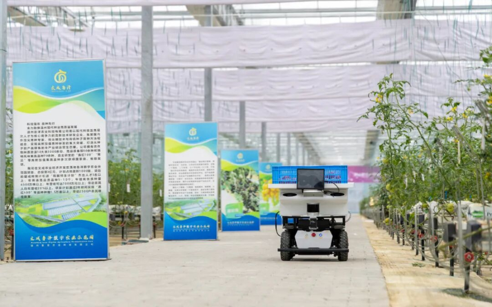 文成鲁泽数字农业示范园项目经理雷笑笑说:“农业展示中心的亮点就是立体种植加智能管控,棚里还用了立体无土栽培、水肥一体化、智能环控、机器人巡检等新技术。”