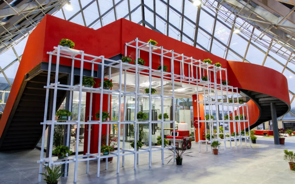 步入文成鲁泽数字农业示范园,造型独特的金字塔形立体农业展示中心格外醒目;刚一走进展示中心,科技感便扑面而来。门口陈列的各式农业机器人整齐排列,侧边的番茄种苗展示区里种植着黑、白、紫、绿、红、粉等多种色系的小番茄种苗,既有园区独有的“嘉红100”,也有黑珍珠、白美人、绿宝石等特色品种,直观展现了园区种苗培育的丰硕成果。