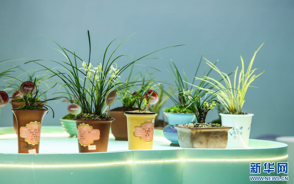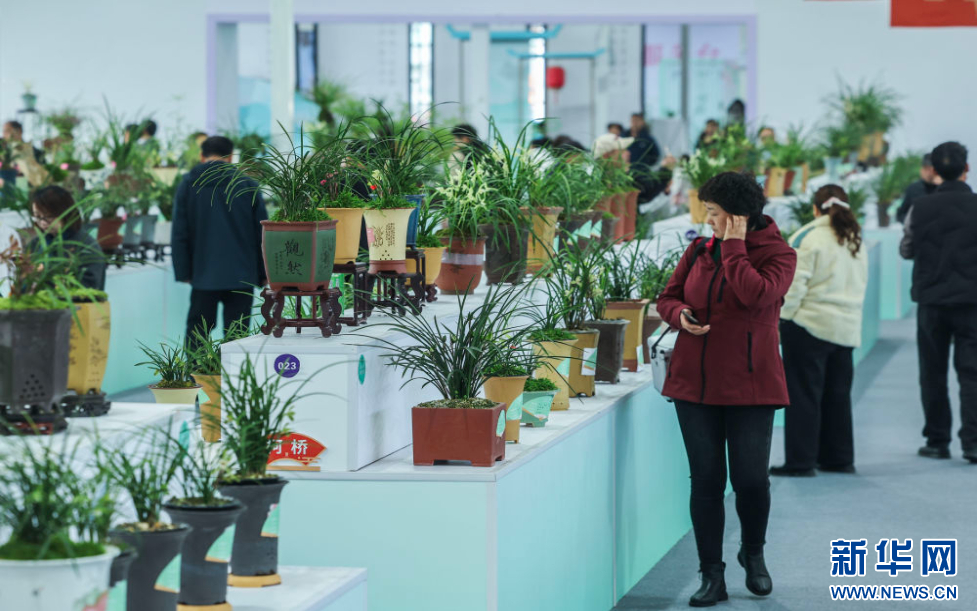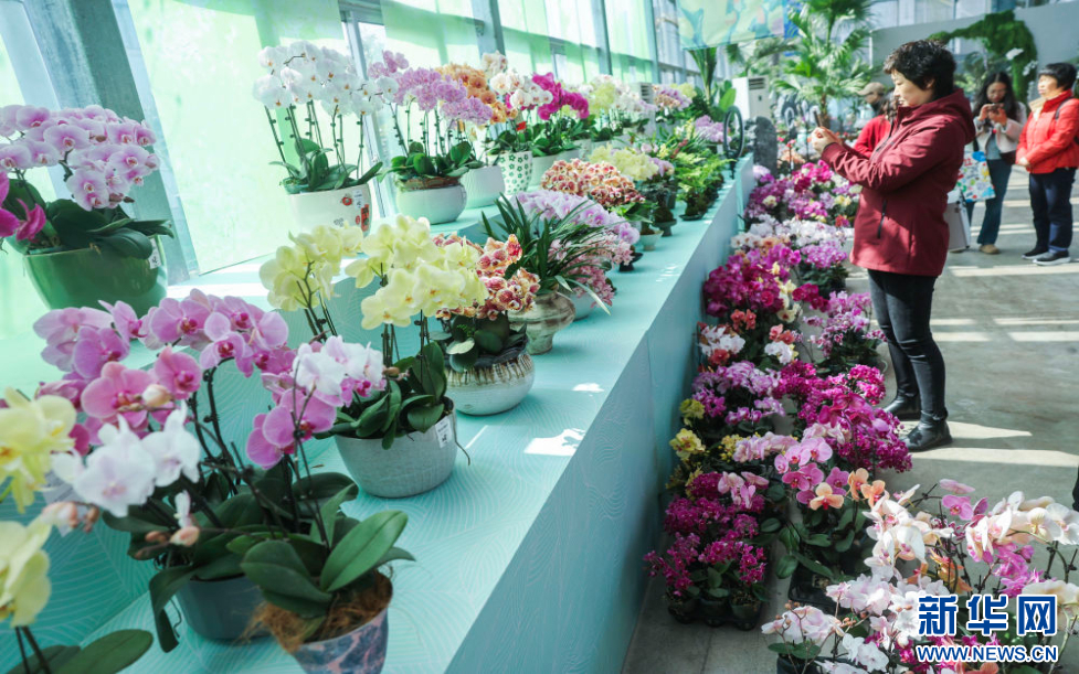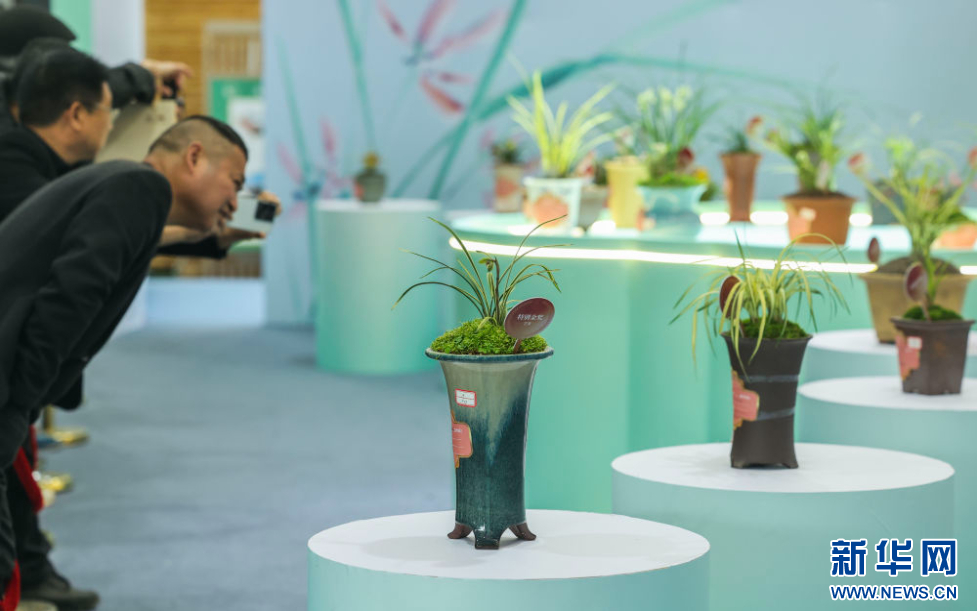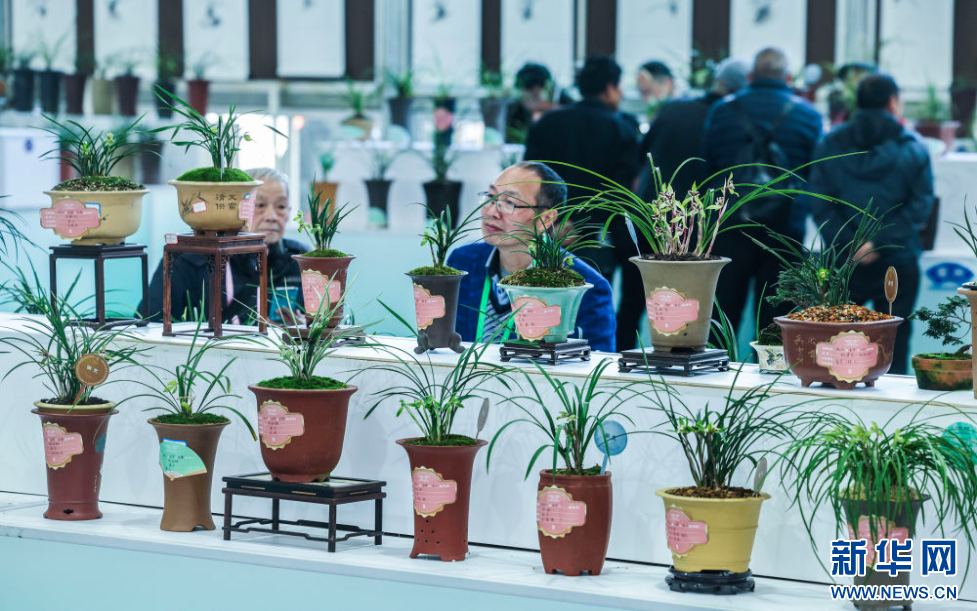 这是3月13日拍摄的春兰大集现场展示的兰花。