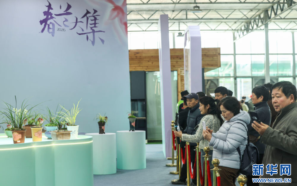 3月13日,观众在春兰大集现场观赏兰花。