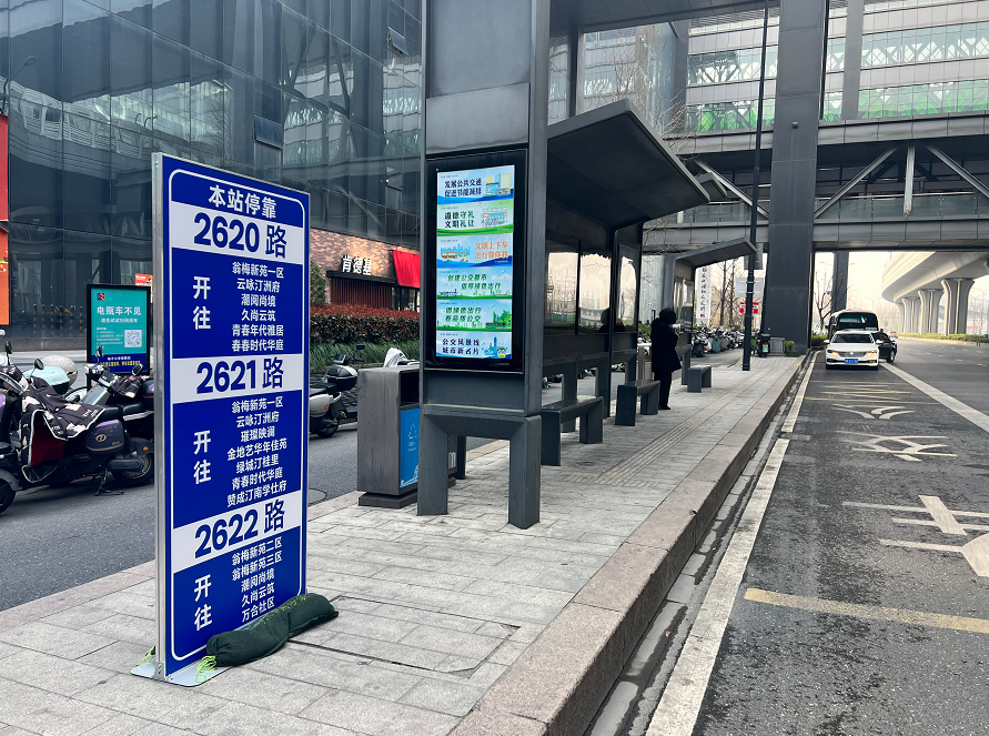 为让居民“出门即知乘车路”,公交公司还在潮阅尚境、复地连城国际花园等多个小区门口设置了醒目的乘车指引牌,并在沿途站点清晰标注了巴士线路、停靠站点及发车信息,真正实现了“抬头可见、出门即乘”。