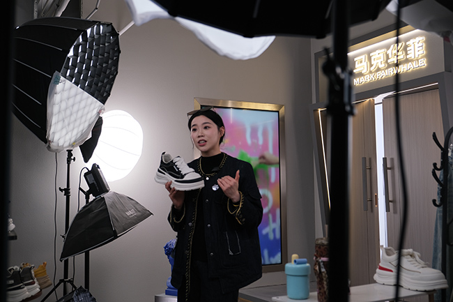 瓯海中央商务区的一家企业正在电商直播中。温州市瓯海区融媒体中心供图