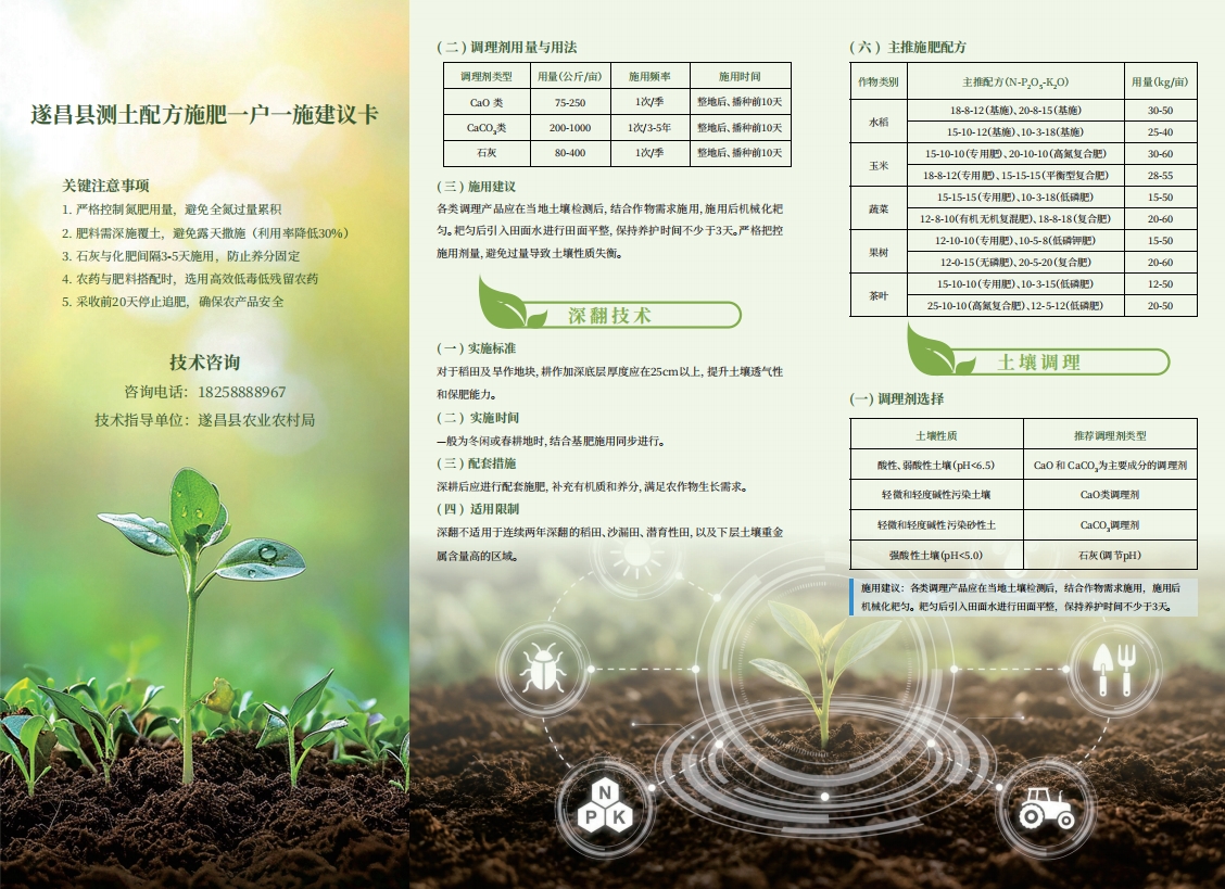 为破题,遂昌县农业农村局从源头抓起,联合第三方检测公司,为种植大户和规模种植主体免费进行土壤检测,并在此基础上创新推出这张集“体检报告+处方建议”于一体的“测土配方一户一施建议卡”,清晰标注土壤全氮、有机质、pH值等关键数据及丰缺评价,明确提出“控氮、减磷、稳钾”等指导方案,如同给每块土地量身定制“营养食谱”。