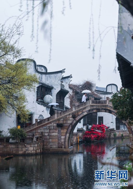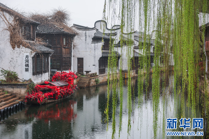 春日里的月河历史文化街区(3月24日摄)。