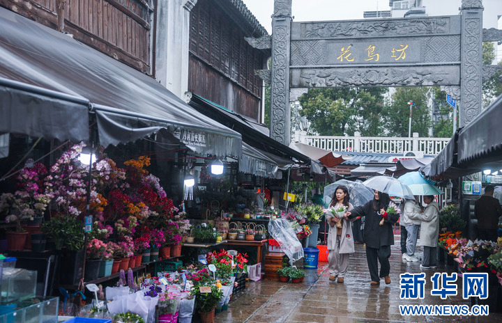 这是月河历史街区的鲜花市场(3月24日摄)。