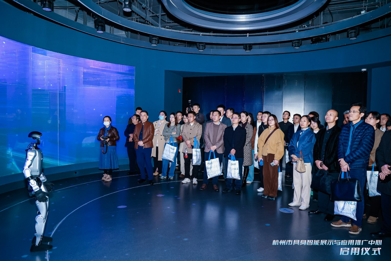 活动结束后,参会人员集体参观了新启用的展示中心,沉浸式体验了杭州具身智能产业的前沿技术与落地应用成果。现场还发布了《具身智能场景共建倡议书》。(陈昕/文 杭州具身智能中试基地科技有限公司/供图)