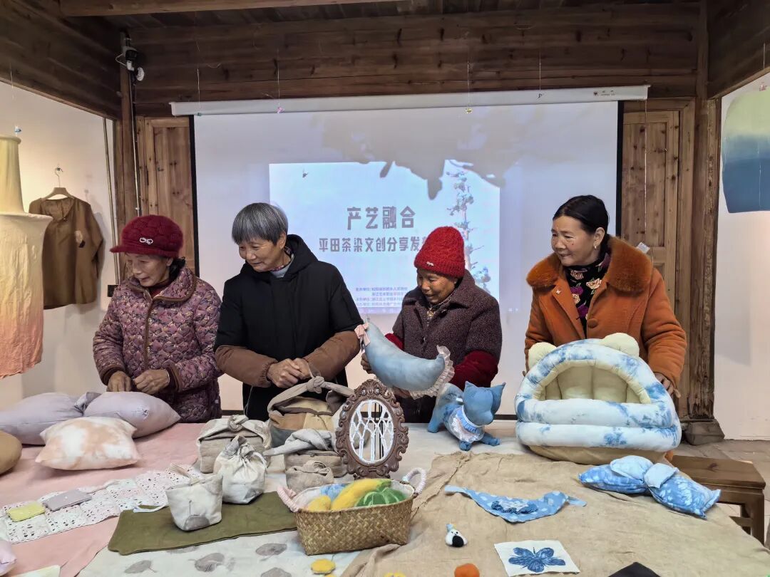 2025年9月,“写字吃茶去——平田三人行书法小品展”在平田书法村开展,三位书法家的60件书法精品,以青山为景、茶香为韵,将书法元素融入茶主题文创产品开发。在“意象茶染 布里生花”茶染文化艺术节、“笔墨平田”书法展等活动中,茶香与墨香在此交融。