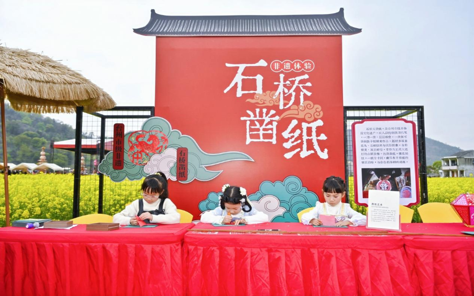 除了国风音乐会,活动精心策划了华服展示与体验、国潮音乐沙龙、古风打卡互动、非遗巡游展演以及民族篝火等一系列丰富多彩的环节。游客在赏花听曲之余,更能沉浸式体验花灯手作、米塑、凿纸、竹编、蟹壳画制作等特色非遗技艺,零距离触摸传统文化的脉动。百亩油菜花田中,随处可见身着汉服、旗袍等传统服饰的游人穿梭拍照,衣袂与花影交相辉映,构成一幅流动的春日画卷。