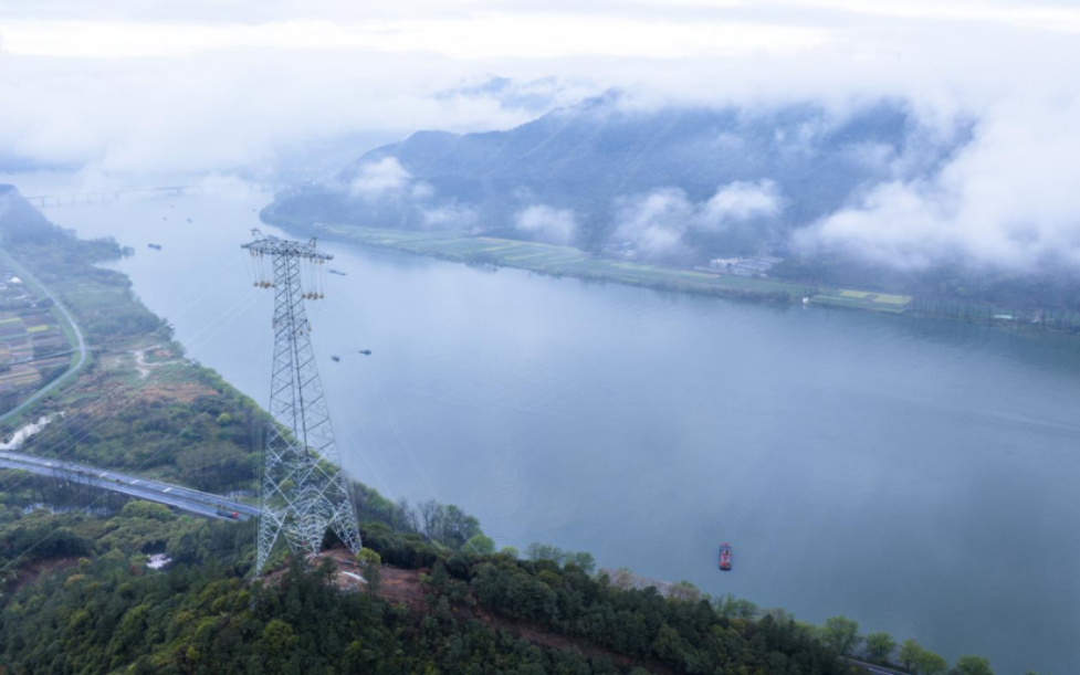 国网杭州供电公司建设部工程管理专职杨正清介绍:“富春江位于国家级风景名胜区的核心生态保护区,是钱塘江上游的黄金航道,工程跨江点江面宽达795米且两侧均为高山。若采用地下工程,不仅面临复杂地质挑战与生态约束,更会大幅增加投资与工期。”因此,架空跨越成为兼顾技术可行、经济合理与生态保护的最优解。