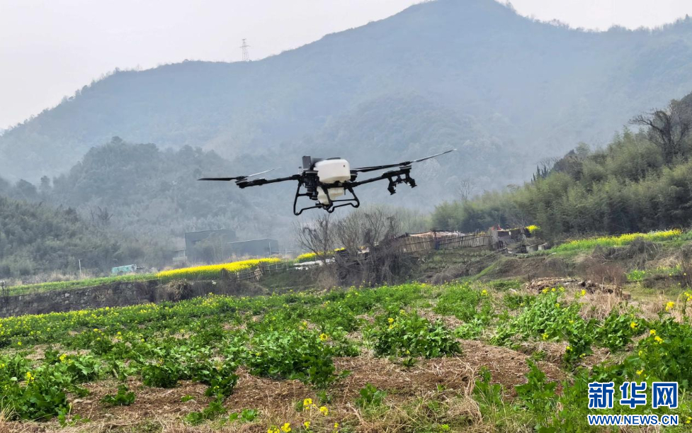 眼下,正是小麦、油菜追施苗肥的关键期。在浙江省杭州市富阳区的农田里,“95后”种植大户杨佳杰正操控着手中的遥控器。随着指令下达,一架植保无人机腾空而起,雾化均匀的肥料精准洒落在麦苗行间。不到一分钟,一亩地的施肥作业便顺利完成。