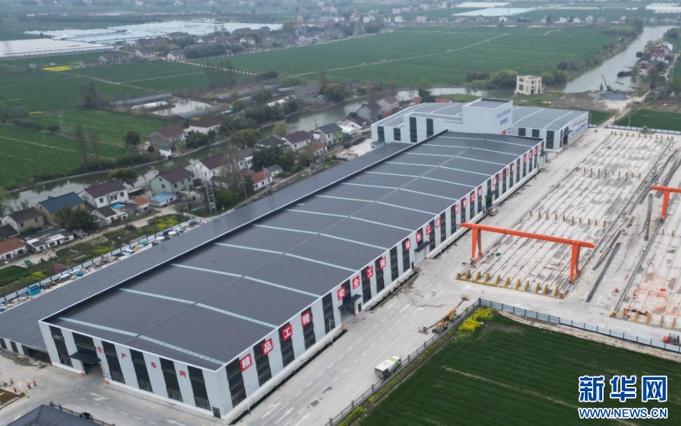 3月31日无人机拍摄的通甬高铁项目嘉善轨道板场,这是保障全线无砟轨道施工的关键配套工程。