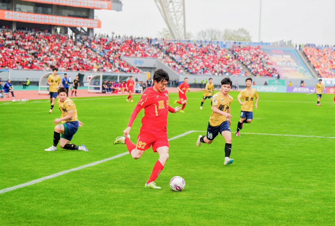 4月6日,2026浙商银行浙江省城市足球联赛(吴越杯)在浙江省嘉兴市体育中心正式开踢。场内近3万名球迷观众热情高涨,全程呐喊助威。在首轮较量中,嘉兴队最终以1:0战胜衢州队,成功拿下“吴越杯”首场胜利。