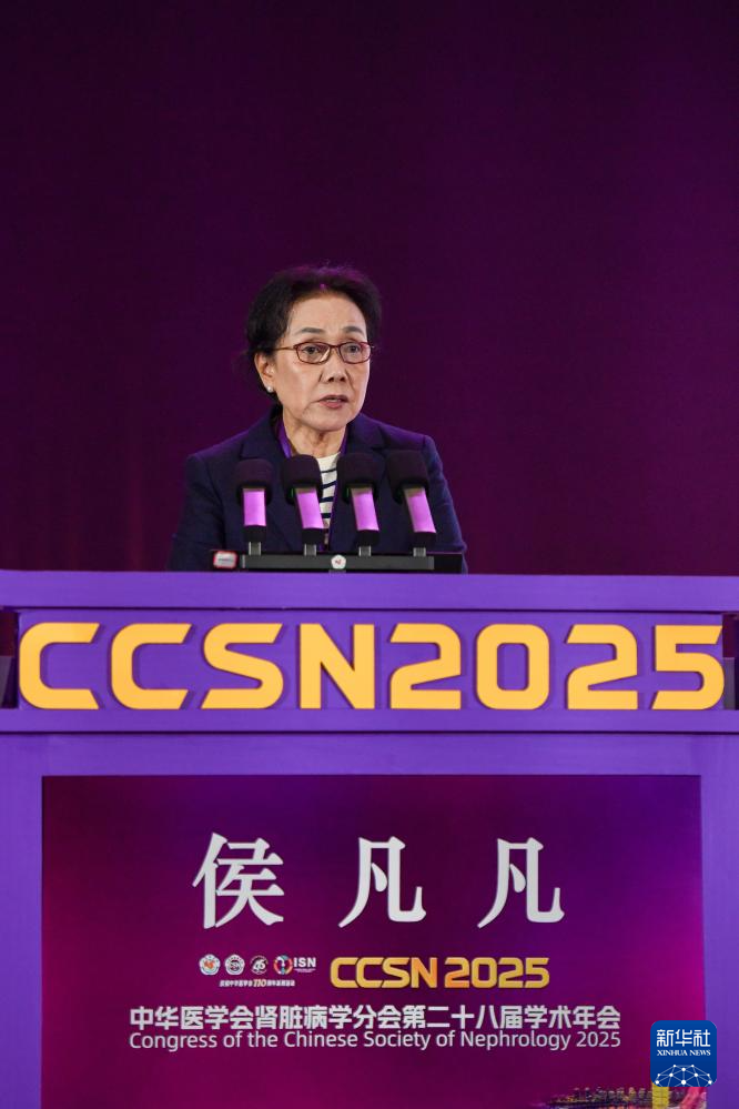 在河南郑州举行的中华医学会肾脏病学分会第二十八届学术年会相关活动上,中国科学院院士、南方医科大学南方医院肾内科主任侯凡凡做大会报告(2025年10月22日摄)。新华社记者 吴鲁 摄