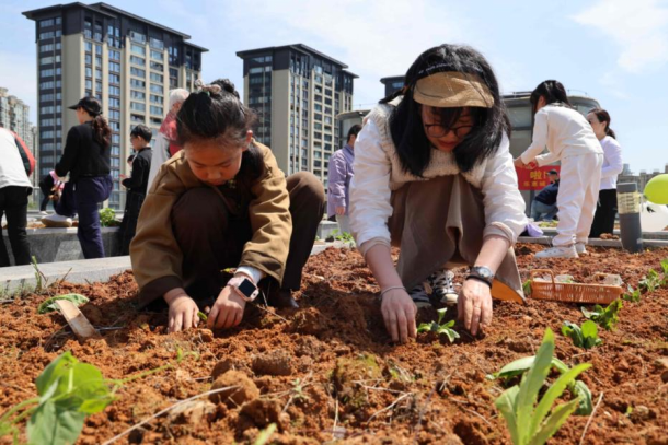 近日,浙江省温岭市太平街道太平社区乐慧城顶楼热闹非凡,伴随着翻土、播种的忙碌身影,“乐邻共享菜园”迎来开耕日。20余户家庭化身“农夫”,在这片近200平方米的土地上,开启了他们别样的城市田园梦。