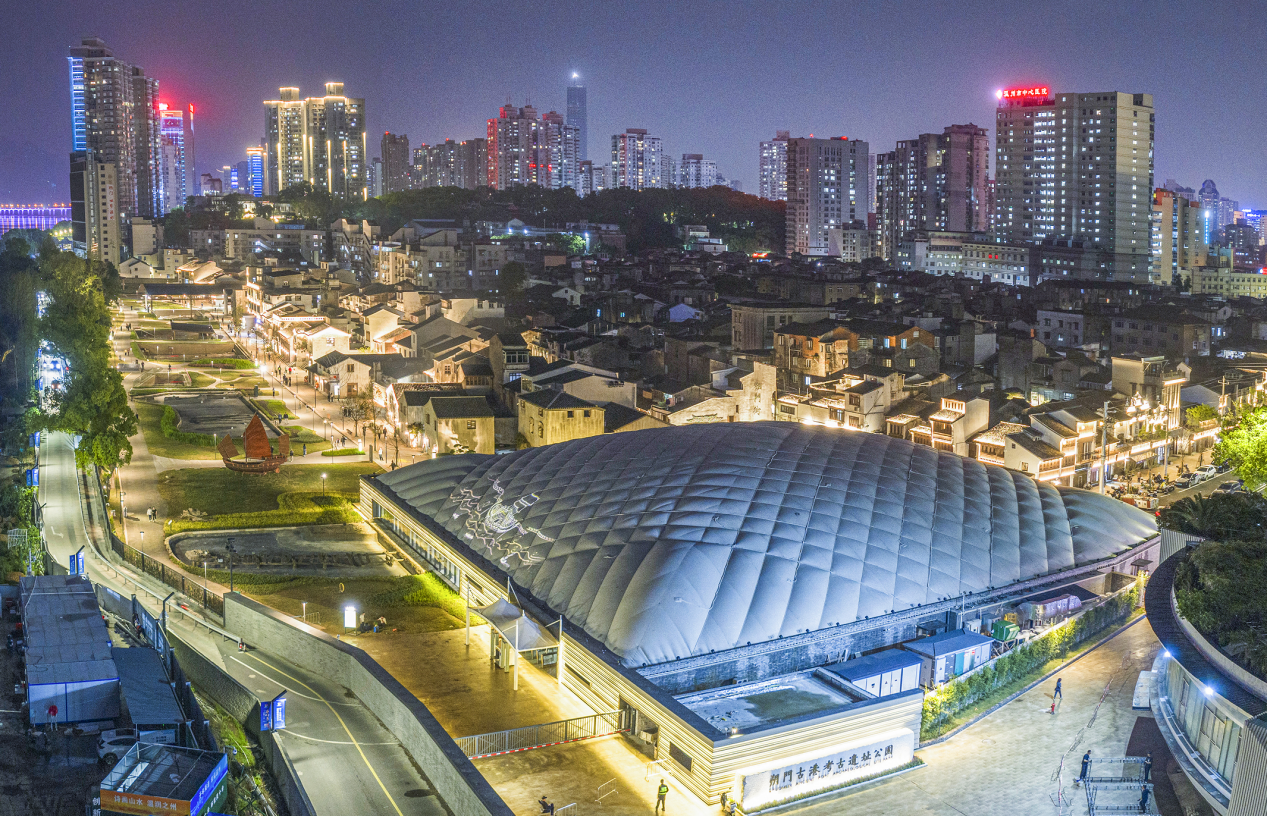 温州朔门古港考古遗址公园夜景俯瞰图。