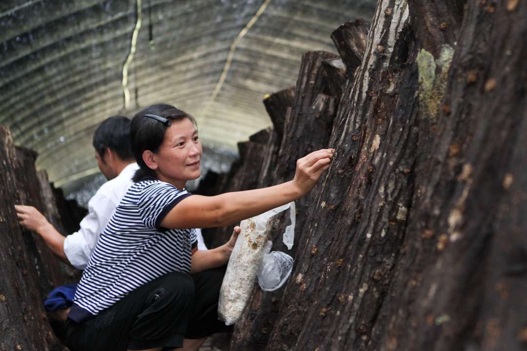 在庆元,菇民们用“剁花法”人工栽培香菇。庆元县食用菌全产业链年产值突破55亿元,古老的林菇共育智慧与现代科技、品牌运营相结合,让“香菇之源”的名片越擦越亮。
