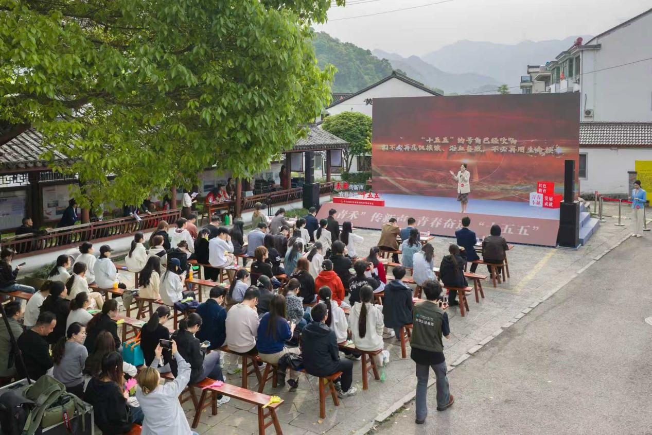 4月15日,浙江农业商贸职业学院2026年思政微课大赛在浙江省绍兴市柯桥区平水镇小舜江村岭下自然村举办。大赛以“‘青禾’传新声·青春奋进‘十五五’”为主题,10位青年教师将课堂搬进乡村一线,为在校师生与当地村民带来一堂“沾泥土、带露珠、冒热气”的沉浸式思政课。