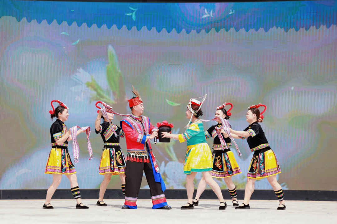 开幕式现场文艺展演环节,各具特色的歌舞、情景剧表演,生动演绎各族群众手足相亲、守望相助的深厚情谊,绘就新时代民族团结的壮美画卷。