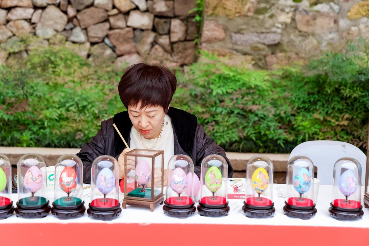 广场上,数十个非遗摊位次第排开,一步一惊喜,一摊一匠心。太平钿剪纸、温州蛋画、手工制陶、吹糖人……一件件非遗好物在匠人指尖缓缓诞生。游客可以挑选一件独一无二的非遗手作,把千年文脉与匠心温度悄悄带回家。