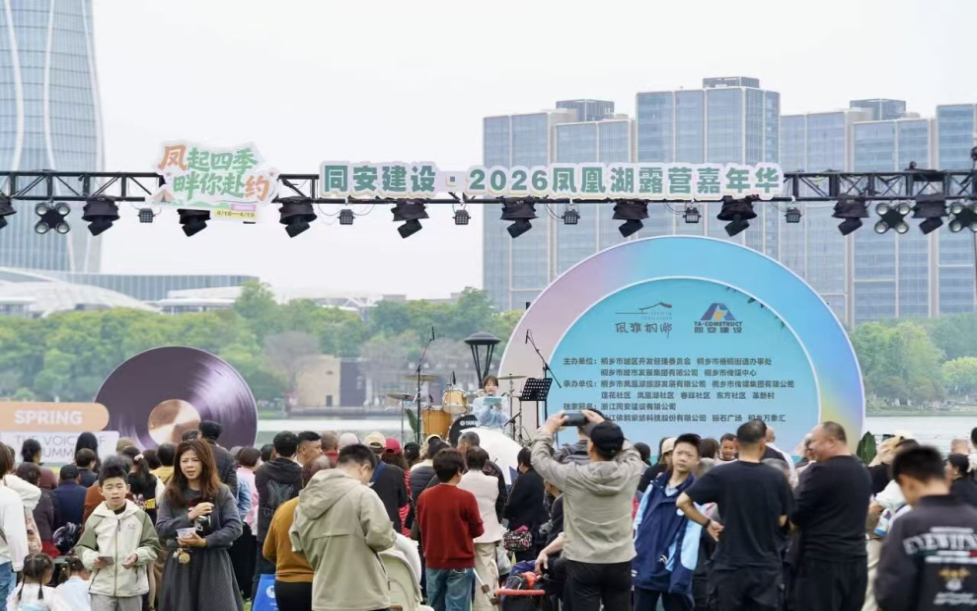 凤凰湖畔,人潮涌动。4月18日,“凤起四季 ‘畔’你赴约”同安建设·2026凤凰湖露营嘉年华在浙江嘉兴桐乡市启幕。