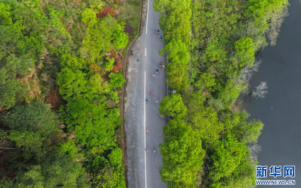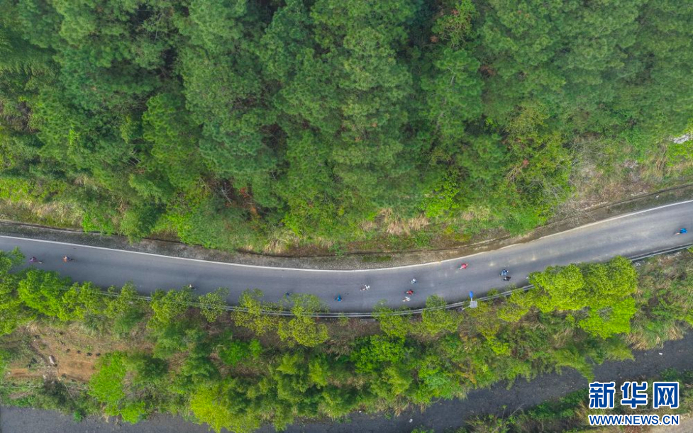 4月19日,选手们奔跑在山野间(无人机照片)。