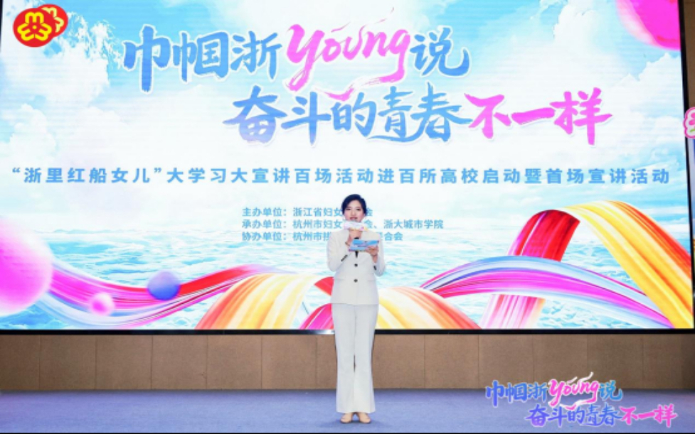 4月20日,“巾帼浙Young说奋斗的青春不一样”“浙里红船女儿”大学习大宣讲百场活动进百所高校启动暨首场宣讲在浙大城市学院举行,将浙江精神、巾帼榜样故事、新型婚育文化等送进校园,激励广大青年学子在“十五五”新征程上争当奋斗者、追梦人。