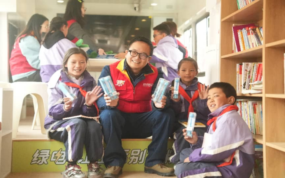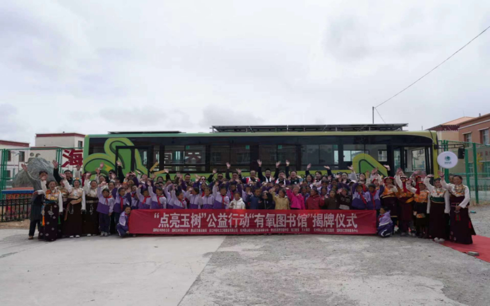 这座别具一格的图书馆,前身是一辆废弃公交车。经“点亮玉树”公益团队匠心改造,老旧车身焕发新生,绘上象征“绿电”的绿电兔图案,车头车尾的路线牌醒目标注“3060路”,寓意奔赴“3060‘双碳’目标”。“以废弃公交改造图书馆,既是资源循环利用的环保创举,更寓意知识能如公交般,载着孩子们驶向广阔天地。”“点亮玉树”公益项目负责人朱小炜阐释设计初衷。
