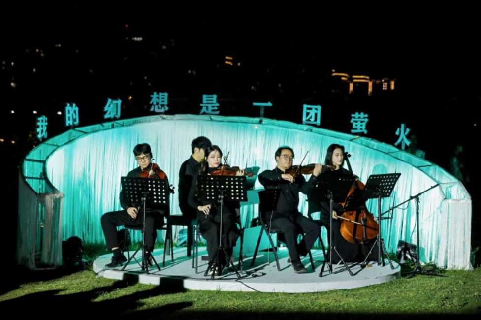 当晚,诗歌会在丽水室内乐团《为你写诗》的旋律中启幕。现场无固定席位,观众在晚风与萤光中沉浸式感受经典诗篇与原创作品的魅力。