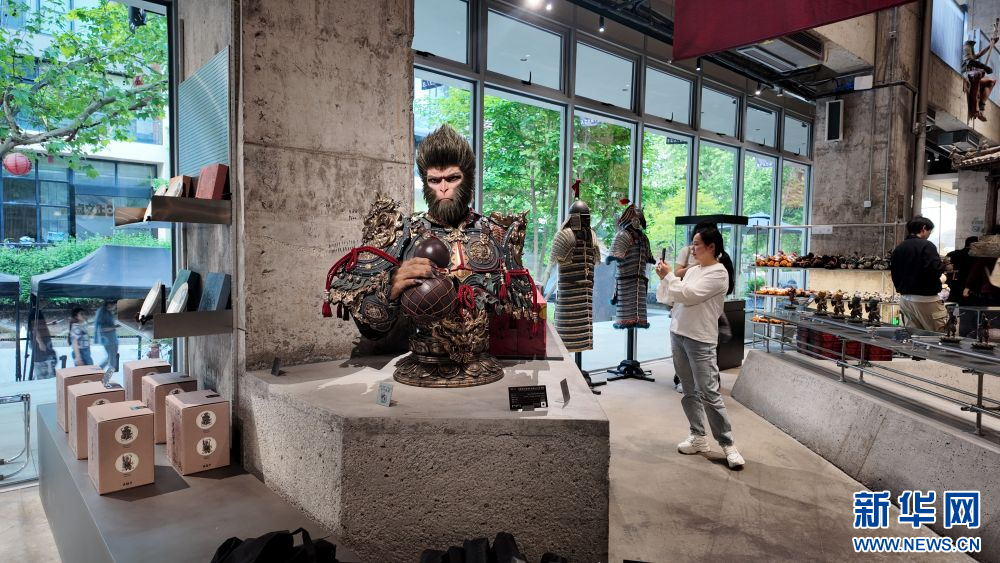 4月19日,黑神话BLACKMYTH零售店里展示的雕塑。新华社记者张璇 摄