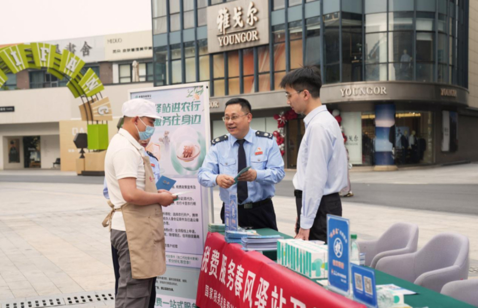 在绍兴各区春风驿站附近设立的活动摊位现场,农行绍兴分行工作人员正向广大纳税人发放春风驿站宣传卡片,并向过往群众介绍春风驿站的服务内容、银税互动相关产品及金融服务等。此外,针对客户提出的税务方面问题,税务局工作人员和农行客户经理现场进行税费服务解答和贷款产品解读。