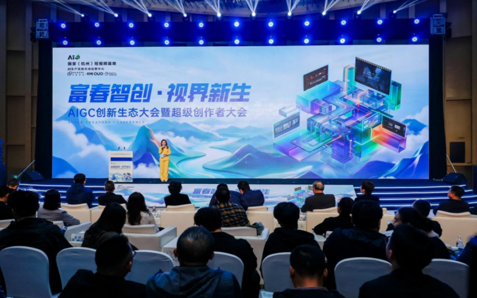 潮起富春,AI启新章。4月23日,AIGC创新生态大会暨超级创作者大会在杭州市富阳区国家(杭州)短视频基地AI生产实验车间运营中心(以下简称“运营中心”)举办。