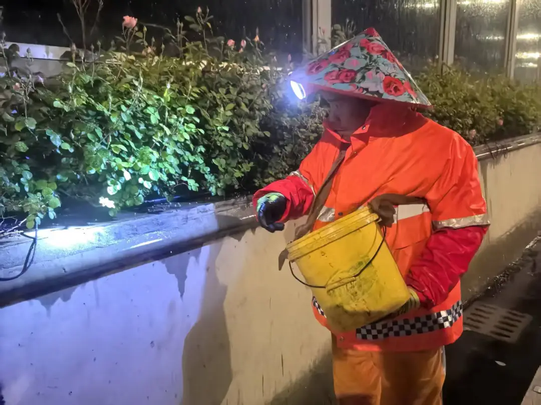 为了不打扰日间车流穿梭,不影响市民出行,所有精细化养护都藏在了夜色里。灯火通明的作业车旁,养护工人的身影在夜色中格外显眼,每一个动作都一丝不苟,每一处细节都用心呵护,用坚守为高架月季的盛放保驾护航。