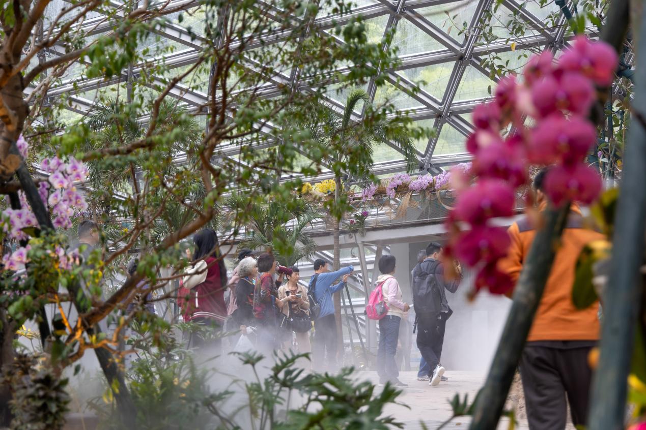 市民游客在温州园博园南园葳蕤馆内驻足观赏。王斌 摄
