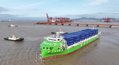 4月15日,全球最大、国内首艘万吨级纯电动智能集装箱海船“宁远电鲲”轮从宁波舟山港北仑港区启航,驶向嘉兴港乍浦港区,标志着该船正式投入商业航线运营。