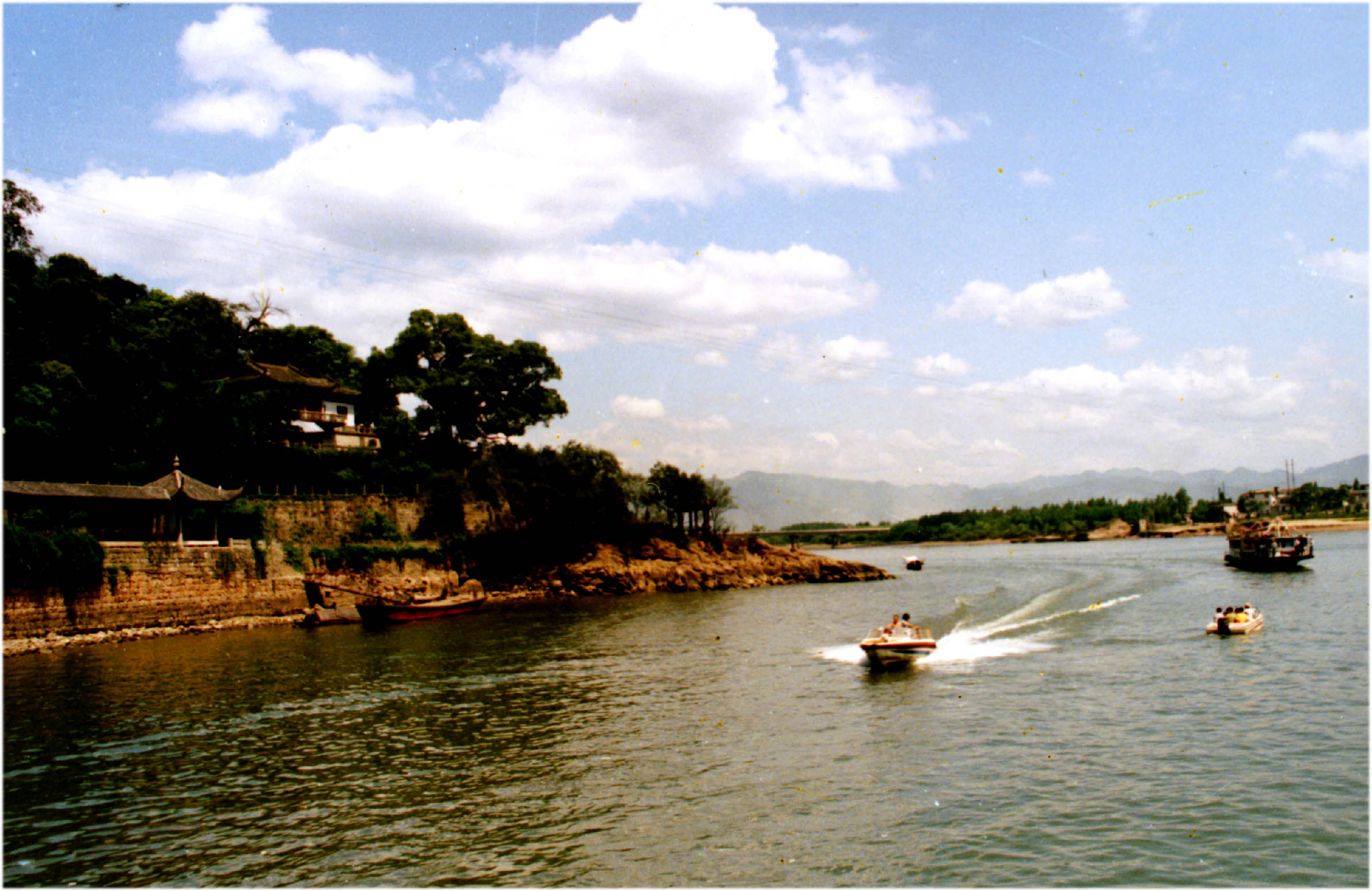 鹳山截江而立、岩壁奇突,其山势如临江俯立的鹳鸟,故名。山上古木葱笼,楼阁错落。有修建于清同治年间的“春江第一楼”,现代文学家郁达夫和其兄法学家郁曼陀的“松筠别墅”、“双烈亭”、“血衣家”,东汉高士严子陵垂钓处及“龟川秋月”、“董公祠”、“澄江亭”、“揽胜亭”等名胜古迹。登临山巅楼阁,俯眺江景,青山叠翠,江流东逝,帆影如梦,令人浮想翩翩,意趣无穷。