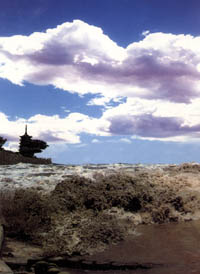 除了盐官海塘是观潮最佳点外,盐官以东7公里的八堡和东、南两潮汇合,两潮相撞,一声巨响,仿佛山崩地裂,潮峰突起叠成冰山雪峰,令人惊心动魄。老盐仓地段有座9米高、650米长的丁字坝,江潮来到这里猛冲丁字坝时,一声霹雳,潮头突兀竖起,返身扑向十八层石阶的鱼鳞石塘,霎时扬起银色暴雨,冲向天际,煞是惊险,人称“返头潮”。在这20公里地段内,潮头的速度每小时为25公里,只要乘坐观潮专车与潮头赛跑,可先在八堡观江、南两潮相撞,再到盐官饱览一线潮,再赶到老盐仓欣赏返头潮,可谓大饱眼福。