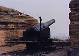 现遗存混合土(糯米、明矾、石灰、砂等)浇筑炮台2座,配有机械装置后膛铁铸大炮1尊,总重约16.7吨,炮身上铸有“光绪戊子年(1888年)江南制造总局”铭文,除炮台表面风蚀剥落、铁炮部分构件损缺外,基本保存完整。