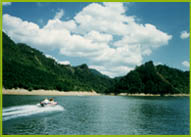 "到此已无尘半点,上去更有碧千寻"。碧绿的湖水,巍峨的山峰,壮奇的瀑布,幽深的峡谷,繁茂的植被,古老的禅寺,纯净的水质,清新的空气,凉爽的气候,使人仿佛进入了人间天堂。