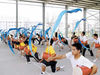 衢州:排练选送的舞蹈《衢江潮鼓》