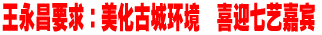 绍兴市委书记、市长王永昌检查了市区的市容市貌。王永昌在检查时强调,“七艺节”闭幕式即将隆重举行,我们要进一步做好路面保洁工作,加强车辆管理,搞好社区环境建设,进一步美化城市,努力营造热烈、整洁的良好氛围,以崭新风貌,迎接“七艺”嘉宾。