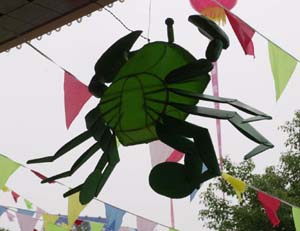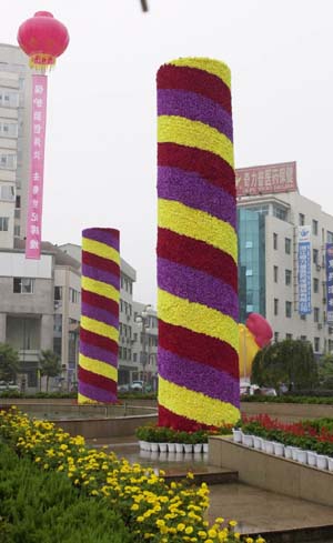 为期两 天的首届三门中国青蟹节9月25日--26日在浙江省三门县举行。该届青蟹节以“新三门、新形象,扬三门青蟹美名,促经济社会发展”为主题,并将举办农产品展览暨经贸科技洽谈会等活动。图为节日期间三门县城街头的喜气景象。