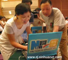 杭州市市长茅临生点击新华网浙江频道的报道专题