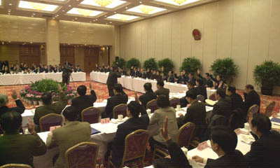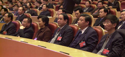 图为出席预备会议的浙江省省委书记、代省长习近平(前右二)等领导。