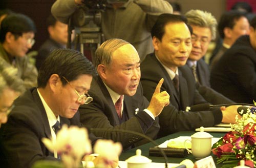 (上图)浙江省第十届人民代表大会第一次会议1月16日下午进行小组讨论,省人大常委会主任李泽民(前左2)在参加台州代表团的讨论。