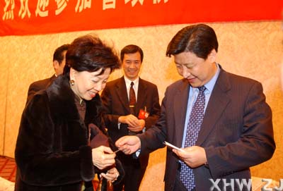 中共浙江省委书记、代省长习近平等省领导会见出席省政协九届一次会议的全体港澳华侨委员。