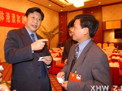 习近平与出席省政协九届一次会议的华侨委员郭胜华亲切交谈。