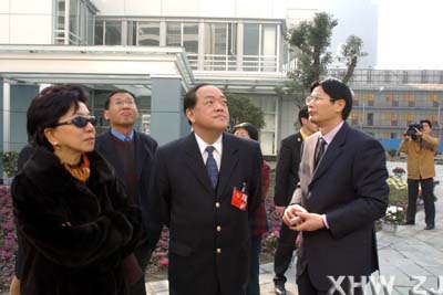 新华网浙江频道1月16日电 港澳委员在杭视察访问。这是澳门贺田工业有限公司总经理、香港特区全国人大选举会议成员、香港浙江同乡会联合会副会长贺一诚委员(中)和昇华服务有限公司、环球轮船有限公司董事长包陪庆委员(左一)等港澳委员在白马公寓视察。