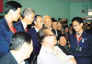 国务院副总理曾培炎、加拿大总理克雷蒂安兴致勃勃地参观了一号机组主控室