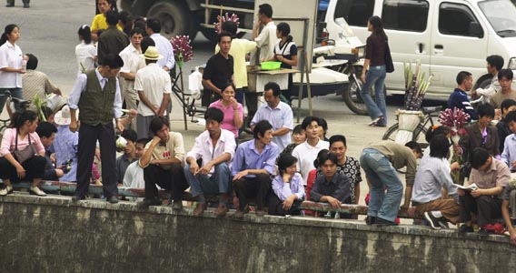 在九溪钱江边的观潮人