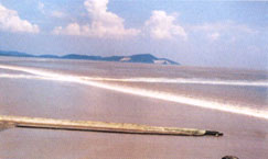 新华网浙江频道9月23日电  在沪杭公路盐官东八公里处,有一个大弯角,这里就是丁桥(东),可就在这个看似不起眼的地方有一个更胜似盐官一线潮的特大涌潮碰头潮。